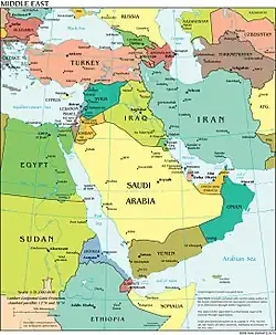 Ten United States presidents have made presidential visits to the Middle East. The first trips by an incumbent president to countries in (or partly within) the Middle East were those by Franklin D. Roosevelt, and were an offshoot of Allied diplomatic interactions during World War II. To date, 16 visits have been made to Egypt, 13 to Saudi Arabia, 13 to Israel, six to both Iraq, Jordan and Turkey, four to Iran, three to the Palestinian Territories, two to Kuwait, Syria, Qatar, and the United Arab Emirates, one to Bahrain, Georgia, and Oman. No incumbent American president has yet visited Armenia, Azerbaijan, Cyprus, Lebanon, and Yemen.