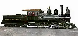 Listed as a Class II Common Carrier, the line carried freight and passengers.[7] Clark bought all-new equipment.[7] Baldwin Locomotive Works of Philadelphia built the line's 10 locomotives, all with a 2-6-0 wheel arrangement. Locomotives No. 1 through No. 4 were steam locomotives originally built to burn coal, but were modified in 1903 to burn fuel oil.[8] Clark bought locomotives No. 4 through No. 8, as well as replacements for No. 2 and No. 3 in 1905 through 1907.[9] The original Nos. 2 and 3 were destroyed in wrecks.[9]