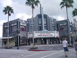 Entrance to the show, housed in a recreation of the Hollywood Pantages Theatre | |