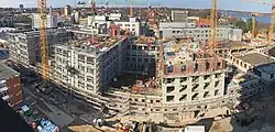 On 30 September 2014, the Universal Medical Center Schleswig-Holstein and the consortium of bidders signed the structural master plan contract.[9] The BAM/VAMED consortium was awarded the contract.[10] On 30 September 2015, one year after signing the contract, the foundation for the extension building of the existing central clinic in Lübeck was laid. The cornerstone for the new clinic was laid in March 2016. The roofing ceremony was celebrated in Kiel at the end of April 2017. The first patients are expected to be treated in the new building from the beginning of 2019. The roofing ceremony in Lübeck was planned for September 2017, and the first patients should