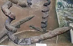 The Mesozoic Gallery features skeletons and models of species of the Mesozoic era. The gallery houses several dinosaur fossils, including a plesiosaur excavated in 2004 from Northeast Nebraska, one of the longest marine fossils in the world.[20]
