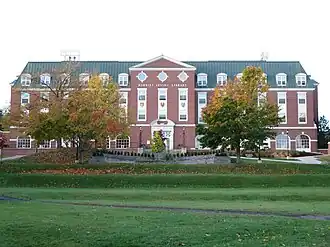 The campus expanded over the next two decades, constructing the G. Forbes Elliot Athletics Centre in 1975, the Canada Games Stadium in 1985, and the Thomas J. Condon Student Centre in 1986. Despite these developments, UNBSJ was considered a commuter campus until 1993, following the construction of the Sir James Dunn Residence. Additional buildings were constructed over subsequent years, such as the K.C. Irving Hall,[38] the Modern Languages Centre (now home to Dalhousie Medicine New Brunswick),[40] the Dr. Colin B. Mackay Residence,[41] and the Hans W. Klohn Commons.[42]