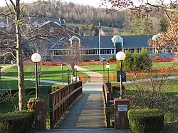 Other campus facilities include three classroom buildings (Powers, Smith, and McKenna—which also serves as the computer center), Millstein Library, Chambers Hall, the administration building (Lynch Hall), the admissions office (Rossetti House) and the Ridilla Athletic Fields. A new classroom and office building named after former campus president Frank Cassell[6] has recently opened and has been awarded LEED gold certification, being the first building on campus to achieve such designation.[7] The campus also features a nature trail and a small creek (Slate Run) that runs through the center of campus.