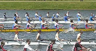 The regatta was first run (as the BUSA regatta) in 1994,[67] replacing the UAU 'Regatta' that had been a two-hour slot for University races in the Nottingham City Regatta. The first Regatta attracted 105 crews; by 2000 this had grown to 354.[68] The 2001 Regatta was the first to be held over two days, and attracted over 500 crews.[69] In 2006 the Regatta grew to three days with almost 1000 crews taking part.[70]
