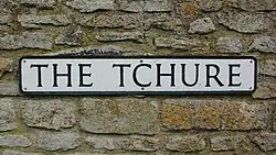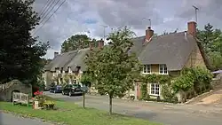 In about 1400[3] or shortly thereafter[2] New College had a tithe barn built at Manor Farm in the village. Its plan is 120 feet (37 m) by 24 feet (7.3 m),[2] it is of nine bays and built of coursed rubble with ashlar quoins and buttresses.[3] The roof is of Stonesfield slate and has raised-cruck trusses.[4] The building has similarities with tithe barns at Swalcliffe[4] and Adderbury,[2] both of which were also built for New College early in the 15th century. It is a scheduled monument[5] and a Grade I listed building.[4]