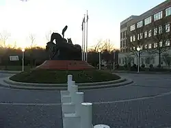 Upper Marlboro is the county seat of Prince George's County,[21] a large urban and suburban area of some 850,000 people adjacent to Washington. U.S. Route 301 and Maryland Route 4 intersect at the edge of town. The northern terminus of the Stephanie Roper Highway Archived December 24, 2014, at the Wayback Machine (Maryland Route 4) is in Upper Marlboro at the intersection of Pennsylvania Avenue and Water Street. Major features of the town include the courthouse, jail, county office building, board of education, and a lake with a walking path. Just to the south of town is the Prince George's Equestrian Center which is the location of the annual county fair, a major annual antiques show and The Show Place Arena on the former Marlboro racetrack grounds. This arena is used for events such as hockey games, circuses, rodeos, conventions, trade shows, and graduation ceremonies of many regional high schools, as well as daily overflow parking for county governmental employees, jurors, and visitors.