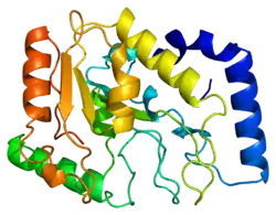 - ^ Nagelhus TA, Haug T, Singh KK, Keshav KF, Skorpen F, Otterlei M, Bharati S, Lindmo T, Benichou S, Benarous R, Krokan HE (Mar 1997). "A sequence in the N-terminal region of human uracil-DNA glycosylase with homology to XPA interacts with the C-terminal part of the 34-kDa subunit of replication protein A". The Journal of Biological Chemistry. 272 (10): 6561–6. doi:10.1074/jbc.272.10.6561. PMID 9045683.