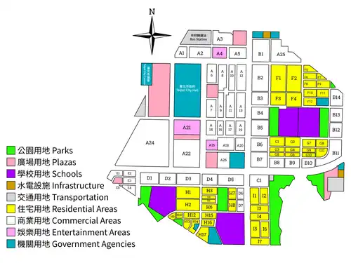 - ^ "What plans and measures are implemented to develop the modern Taipei sub-center, the Xinyi Planning District?". english.gov.taipei. 18 April 2017. Retrieved 18 June 2022.