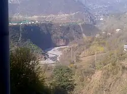 Uri is located at the entrance to the Kashmir Valley from the west, lying on the Jhelum Valley Road.[4] Prior to the partition of Kashmir, the road linked Uri to Rawalpindi and Srinagar. Another important road linked Uri to Poonch via the Haji Pir pass.[5] Uri is at a distance of 76 miles (122 km) from Srinagar, 42 miles (68 km) from Muzaffarabad and 49 miles (79 km) from Poonch.[5]