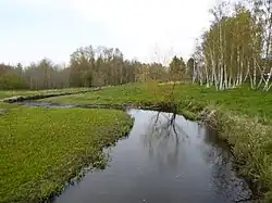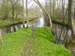 Usserød Å extends from the south side of Sjælsø Lake. Its first part is heavily regulated and runs through the outskirts of Birkerød, Eskemose Skov and the Istedrød area. It then passes under the Helsingør Motorway and continues through the protected Usserød Ådal (Usserød Valley) at Mortenstrup before entering a suburban neighbourhood just north of Kokkedal station. Usserød Å then passes the three mill ponds Stanpedammen, Frederiksdam and Mølledammen before joining Nive Å at Nive Watermill.[1][2]