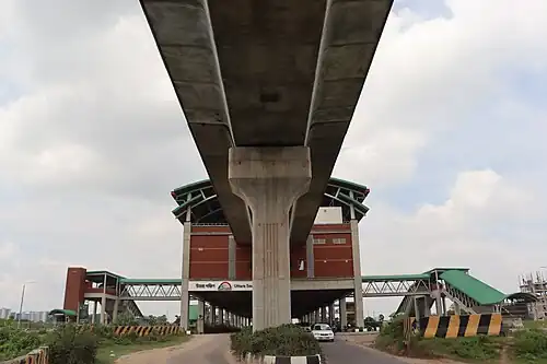 Uttara South (Bengali: উত্তরা দক্ষিণ, romanised: Uttora dokkhin) is an elevated metro station of the Dhaka Metro's MRT Line 6. This station is located in Uttara, a neighbourhood of Dhaka. It is estimated that the station will be opened on the last week of March 2023.[2][3] It became operational from 31 March 2023.[4]