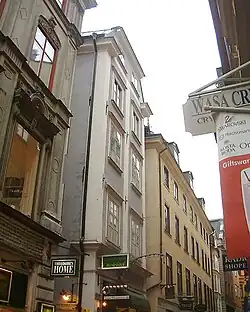 - ^ a b c d e Glase, Béatrice; Gösta Glase (1988). "Västra Stadsholmen". Gamla stan med Slottet och Riddarholmen (in Swedish) (3rd ed.). Stockholm: Bokförlaget Trevi. pp. 69–70. ISBN 91-7160-823-0.