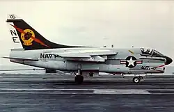 In October 1968, the squadron, by then the last tactical propeller driven squadron in the Navy, transitioned from the A-1 to the A-7 Corsair II. After only four months of training, the squadron returned to the Vietnam War aboard USS Ticonderoga. It was during this cruise that the squadron set a record — in 33 flying days, pilots flew 1,650 sorties in combat, each averaging over 92 hours in the air.