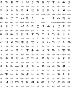 The Vai are Mandé peoples that live mostly in Liberia, with a small minority living in south-eastern Sierra Leone. The Vai are known for their indigenous writing system known as the Vai syllabary, developed in the 1820s by Momolu Duwalu Bukele and other Vai elders.[3] Over the course of the 19th century, literacy in the writing system became widespread. Its use declined over the 20th century, but modern computer technology has enabled a revival.