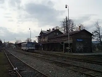 The Valšov–Rýmařov railway[1] is a commuter rail line in the Czech Republic. It was built and primarily operated by Imperial Royal Austrian State Railways (kkStB) as Staatsbahn Kriegsdorf–Römerstadt. It was divided from Bahnstrecke Olomouc–Opava východ at Valšov to the direction of Jeseník and Rýmařov.
