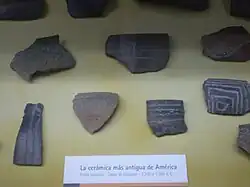 The Valdivia culture is one of the oldest settled cultures recorded in the Americas. It appeared one thousand years after the Las Vegas culture and thrived along the coast of Santa Elena peninsula in Santa Elena Province of Ecuador between 3500 BCE and 1500 BCE.[1][2][3][4]