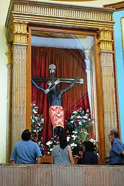 The Temple of Santa María Ahuacatlán was originally a chapel when it was started in 1864 but has been converted into a church which is still under construction.[12] The main altar contains a Black Christ which is still worshipped.[2] Inside the church are extremely large canvases by Phillippa, an English artist who was recently commissioned. These canvases depict the relationship between Mazahua legend and the Black Christ.[12]