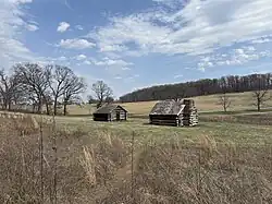 Throughout the park there are reconstructed log cabins of the type thought to be used during the encampment. Earthworks are visible for the defense of the encampment, including four redoubts, the ditch for the Inner Line Defenses, and a reconstructed abatis.