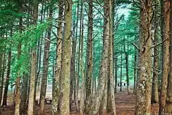 Atlas cedar | Behind La Muntanyeta restaurant. | Lebanon, Syria and Turkey | Tree that can reach 40 m in height with grayish fissured bark and primary ramifications, frequently horizontal. | ![]() |
