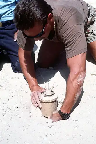 A Valmara 69 mine during training by Explosive Ordnance Disposal (EOD) Team in Kuwait, 1992. | |