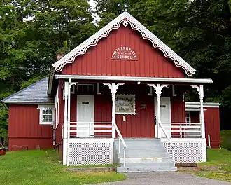 Van Cortlandtville School, also known as Common School District No. 10, is a historic school building located at Van Cortlandtville, Westchester County, New York. It was built about 1850 and is a small, one story, brick vernacular Gothic Revival style building. It has a steeply pitched, slate covered gable roof and board and batten siding. Additions were made to the original building in the early 20th century and in 1940. The building serves as headquarters of the Van Cortlandtville Historical Society.[2]