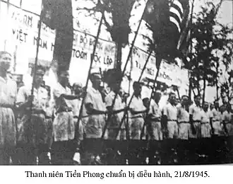 This organization was led by Dr. Pham Ngoc Thach of the Indochinese Communist Party, and initially cooperated with the Japanese colonial rulers in hope of securing an independent state.[3] During the summer of 1945, it recruited 200,000 members. Soon, it had over a million members in Cochinchina. Vanguard Youth eventually joined the Viet Minh in late August 1945 during the August Revolution.[4]