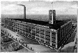 In 1903, with labor troubles looming, Vassar Swiss moved their production 80 miles (130 km) west to Rochelle, Illinois. The company grew in size, and in 1912, Northwestern Knitting Company (later Munsingwear) purchased the firm.[3] Shortly after the sale, Northwestern decided to ramp up production and move Vassar Swiss back to Chicago. The company contracted real estate developer Stewart Hodges, a specialist in factory construction, to build a new plant, which Vassar Swiss would lease. Hodges chose a site on Diversy, near the rail lines and adjacent to the Maplewood station.[3] Hodges also contracted his father-in-law, Lawrence G. Hallberg, to design the new factory. A building permit was issued in September 1913, and construction was completed in April of the following year.[3]