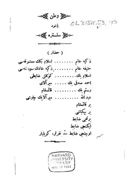 ![]() First page of the Ottoman Turkish edition of Vatan Yahut Silistre, copy created in 1888 | |
