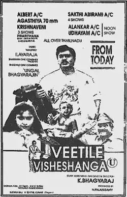 Veetla Visheshanga (transl. The events at home) is a 1994 Indian Tamil-language comedy drama film, written and directed by K. Bhagyaraj. The film stars Bhagyaraj himself and Pragathi, with Janagaraj, Suresh and Tanikella Bharani in supporting roles. It was released on 14 January 1994, Pongal Day. The film was remade in Hindi as Mr. Bechara (1996) and in Kannada as Baanallu Neene Bhuviyallu Neene (2001).[1][2]