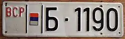 On territory of the Republika Srpska entity, license plates were used similar to those before the war, with difference that instead of red star, the Serb four-S coat of arms was used. Letters on plates were usually in Cyrillic script, but the license plates with Latin versions of codes are also used.