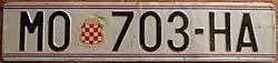 On the territory of the Croatian Republic of Herzeg-Bosnia, license plates were used similar to those of Croatia, with difference in the shape of shield in Croat coat of arms ("checkerboard"-"šahovnica").