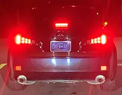 Early deterioration on a rear plate. The aluminum base is visible where the reflective layer has fallen off.