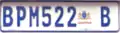 Number plates are available in plastic or metal. Plastic is the preferred material used by the majority of the motorists. They are also more common than their metal counterpart and are issued as standard plates by car dealerships, except in Gauteng Province where, from 2013, newly issued plates must be metal.