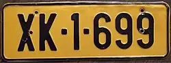 Until 1914, each municipality or local management board issued its own registration numbers, which naturally led to overlaps and confusion. The first national system was inspired by the British one, using white letters on a black background with each province using its own leading letter - major towns received two-letter combos, while smaller towns and municipalities used three-letter combinations.[2]
