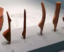 The figures consist of carved bone, antler or mammoth tusk ivory. They are between 15,000 and 11,500 years old and date from the Magdalenian period. They measure between 5.4 and 8.7 centimetres (2.1 and 3.4 in) long.