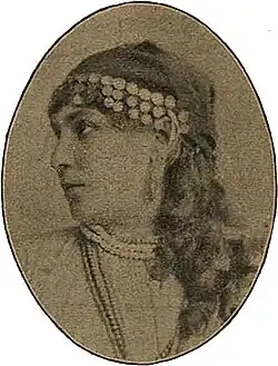 Vera Vasilyevna Zorina (Russian: Вера Васильевна Зорина; real surname Popova; 1853 - 1920) was a Russian operetta singer (mezzo-soprano), best known as a Russian romances (or 'Gypsy art-songs') performer. She became famous after playing the part of Stesha in the popular musical Gypsy Songs in Characters by Nikolai Kulikov. Another highly popular part of hers was La Périchole in Jacques Offenbach's operetta. Vera Zorina (an ethnic Russian) is regarded as a founder of the "Gypsyan line" in Russian operetta.[1][2]