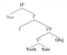 In these structures the verb (ω) precedes the hierarchically higher subject (φ). This structure obeys Weak Start. Thus, subject lowering is applied in order to satisfy this prosodic structure constraint.[4]