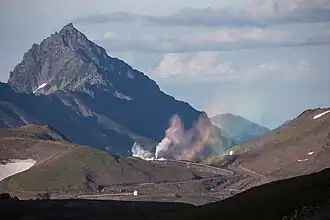 Verhne-Mutnovskaya power station is located in 60 km (37 mi) to the southwest of the city of Petropavlovsk-Kamchatsky, Russia. The power plant was put into operation in 1999. The power plant has three identical direct cycle turbines of 4 MW each. Each turbine is rated at 8.3 bars inlet pressure and a steam flowrate of 8.4 kg/s. Another feature of the station is an air-cooled condenser. The power plant is part of a single complex with Mutnovskaya power plant-1. These plants share the same geothermal field. This complex is involved in the Central Power Hub.