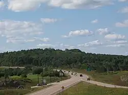 VT 289 begins at a partial interchange with VT 2A in the town of Essex. The route heads eastward through a deep rock cut as it bypasses the village of Essex Junction to the north. After 0.5 miles (0.80 km), the rock cut gives way to a mixture of forests and open fields. VT 289 narrows from three to two lanes as it curves southeast to interchange with VT 15. East of VT 15, the highway veers eastward to meet Essex Way, then gradually turns to the south toward the Winooski River as it traverses several small hills.[3]