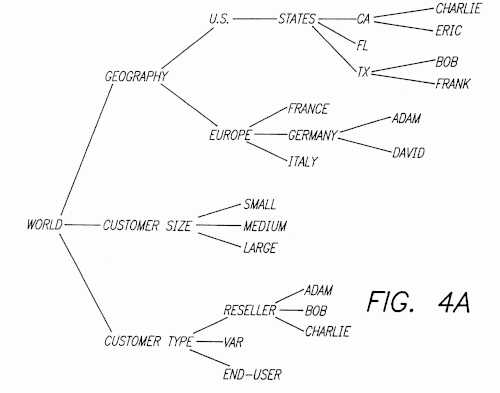 Figure 4A of the patent, below, shows an example of an arrangement of an organizational group according to the patent.