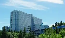 Construction ended in September 1987 on the main building, and it was dedicated in November 1987.[5] In February 1988, the new $136 million facility opened to patients on Marquam Hill after a 364-day delay in construction,[6][7] and demolition of the old buildings started in May 1988.[5] When the new facility opened, it had a capacity of 478 beds, but never had staffing to operate at full capacity, and as of 1990 only used 399 beds.[8] The final phase of construction was a $11.7 million, 413-space parking garage built starting in 1990.[9]