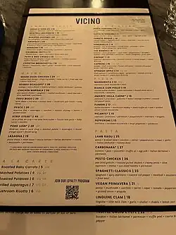 Vicino serves cocktails as well as wines from California, France, and Italy.[5]