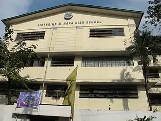 Victorino Mapa High School (Filipino: Mataas na Paaralang Victorino Mapa) (formerly Manila East High School), situated in San Miguel, Manila, is one of the oldest public high schools in the city. It has produced a list of successful graduates in various fields since its foundation in 1923.