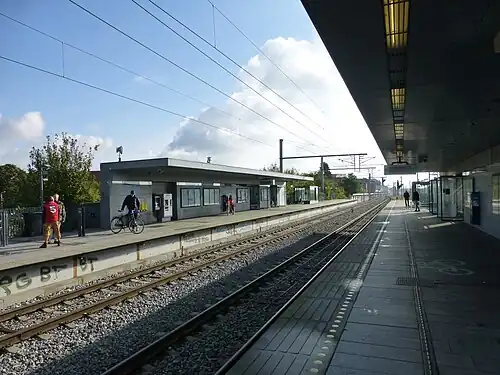 Vigerslev Allé station is an S-train station in Copenhagen, Denmark. The station is located on Vigerslev Allé, the main traffic artery of its namesake neighbourghood of Vigerslev, which forms the westernmost part of the Copenhagen district of Valby.[1]
