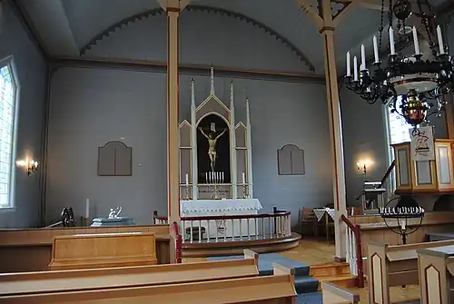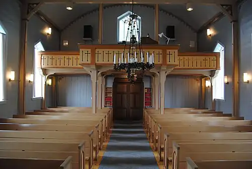 Vike Church (Norwegian: Vike kyrkje) is a parish church of the Church of Norway in Alver Municipality in Vestland county, Norway. It is located in the village of Vikanes, along the Romarheimsfjorden. It is one of two churches in the Osterfjorden parish which is part of the Nordhordland prosti (deanery) in the Diocese of Bjørgvin. The white, wooden church was built in a rectangular design in 1891 using plans drawn up by the architect Johannes Øvsthus. The church seats about 200 people.[1][2]