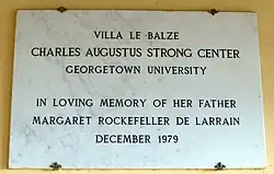 Following the end of the war, Margaret retained the villa for 35 years by employing a minimal maintenance staff before gifting Villa Le Balze to Georgetown University in December 1979, where it would become the Charles Augustus Strong Center and would allow students to study Italian culture and history.[2][6] Margaret's decision to donate the villa to Georgetown was the result of the provost of the university, Fr. J. Donald Freeze, S.J., who promised that the university would pay the fee to keep a light at her son's grave lit, as he had died and was buried in Fiesole. Upon its donation, Freeze was responsible for creating its academic programs and ran the program in 1991 upon resigning as provost.[5]
