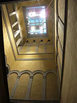 For a short period it was owned by the Italian tenor Giovanni Matteo Mario and his wife Giulia Grisi, the transaction was completed by financier N M Rothschild of London, then in 1871 the villa was purchased by Pietro Pagliano, who added a medievalizing crenellated tower, but a new, more sympathetic owner, the American Phelps Thomas, took ownership in 1882 and began a programme of free restoration and aggrandisement, to designs of the antiquarian architect Corinto Corinti (1843–1930).[3] A large central staircase was added and grand cinquecento portals. He reduced the tower, designed a new vaulted porte-cochere for carriages, overhung by a garden, which still exist, and remodelled the park by adding an Italian terraced garden and conservatories, with a pergola that Penelope Hobhouse found to resemble the wooden frames shown in woodcuts for Francesco Colonna's Hypnerotomachia Poliphili.[4] Augusto Bruschi was entrusted with decorative painting, covering walls with medieval and neo-cinquecento patterns.[1] After a sale of its contents in 1891[5] the villa passed into the hands of the Carrega di Lucedio family and then, in 1911,[6] to the art critic, journalist and founder of the art magazine Il Dedalo, Ugo Ojetti and his wife Fernanda,[7] who undertook further structural remodeling, removing many of the 19th century accretions, and installing an extensive library and many paintings and sculptures.[8] From 1973 to 1987 the Villa Il Salviatino housed Stanford University's overseas program Stanford in Italy with classrooms, offices, library, dining facilities, and students' rooms.[9]