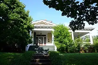 The Vinson House is a historic house at 2123 Broadway in Little Rock, Arkansas. It is a single-story wood-frame structure, with broad Classical Revival styling. It has a hip roof, with projecting gables on several sides, and a modillioned cornice. A porch wraps around three sides of the house, supported by Ionic columns. The main entrance is framed by sidelight and transom windows, with pilasters and an entablature. The house was built in 1905 to a design by noted Arkansas architect Charles L. Thompson.[2]