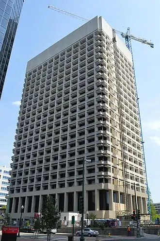 The Virginia National Bank Headquarters Historic District encompasses a skyscraper, parking garage, and public plaza in downtown Norfolk, Virginia. Bounded by East Main and Atlantic Streets, Commercial Place, and Waterside Drive, it includes the 24-story Virginia National Bank building, constructed in 1965–67 to a design by Skidmore, Owings & Merrill, one of Virginia's leading architectural firms of the period. The accompanying plaza and garage formed part of the design, and are a significant example of mid-20th century architecture and landscape design principles. Its construction marked the start of a revitalization and transformation of downtown Norfolk.[2]