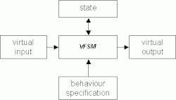 A virtual finite-state machine (VFSM) is a finite-state machine (FSM) defined in a virtual environment. The VFSM concept provides a software specification method to describe the behaviour of a control system using assigned names of input control properties and output actions.